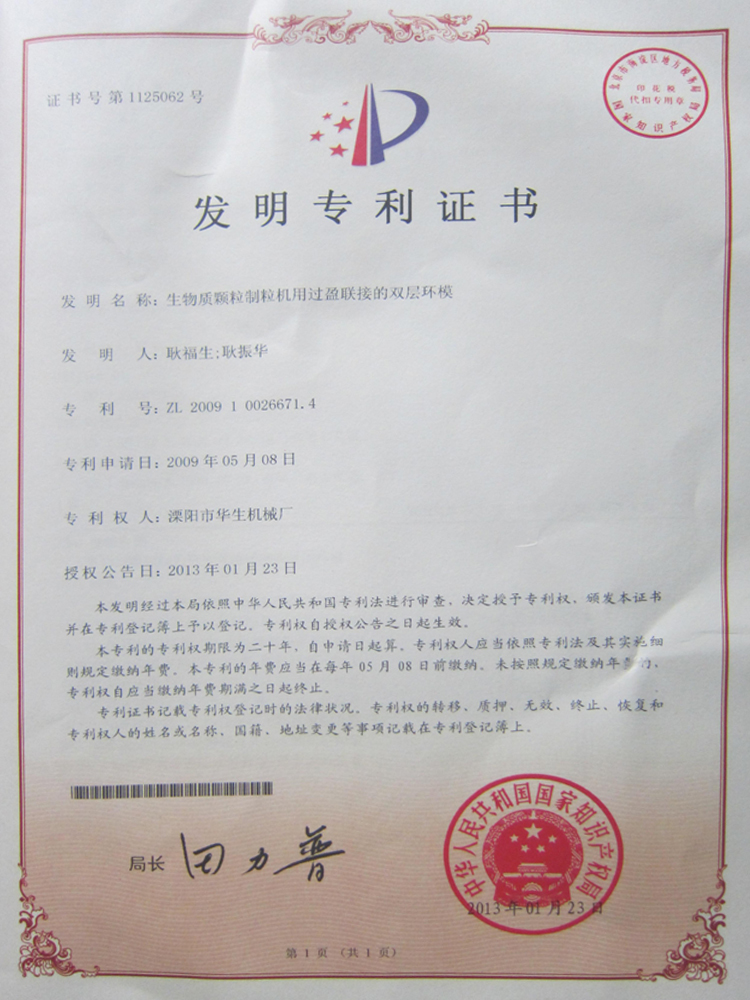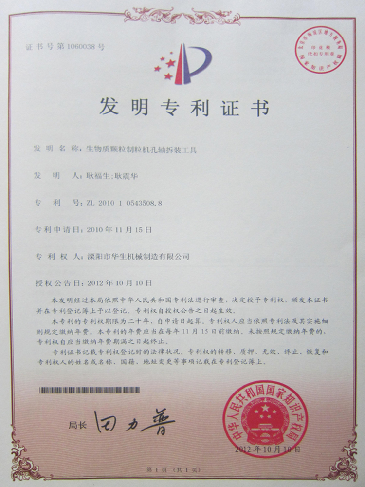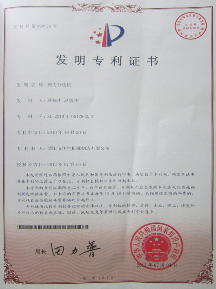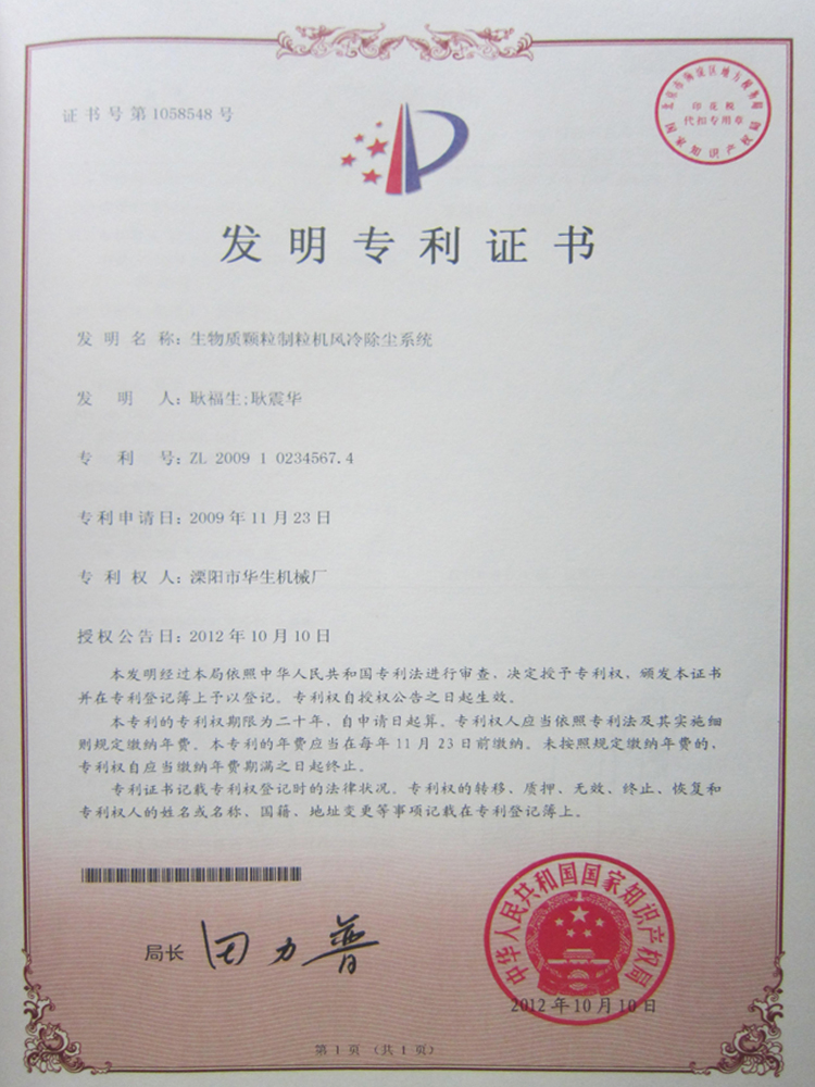 國(guó)家專利證書